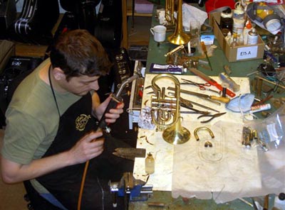 今回は先ず業務報告。「ザイレム・カード」をお持ちの方で過去二年間にご利用の無い方は今回整理させていただきました。ご了承下さい。尚、それ以外のメンバーの方へは「アプティ・カード」と対応した新しい「ザイレム・カード」をすでにお送りしてありますので、もしお受け取りになられてない場合は至急ご連絡願います。 で、今回は最近問い合わせを非常に多くいただいているGerdt Trumpetの製作風景。 (ここに写ってるコルネットは8月に到着予定です。) 現在の予約分とは別にライト・ウェイトとヘビー・ウェイトのニューモデル2機種のプロトが8月中には到着するので逐次紹介して行きます。